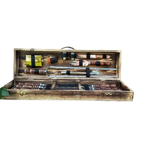 Набір для шашлику подарунковий 650*12*2,5 мм. з комплектом аксесуарів у дерев'яному кейсі 123082