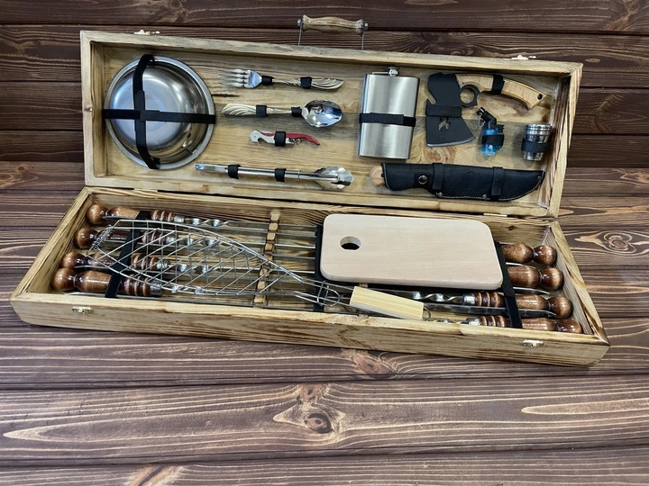 Набір шампурів Грім і Полум’я в дерев'яному кейсі Подарунковий набір для пікніка (KS-7622)