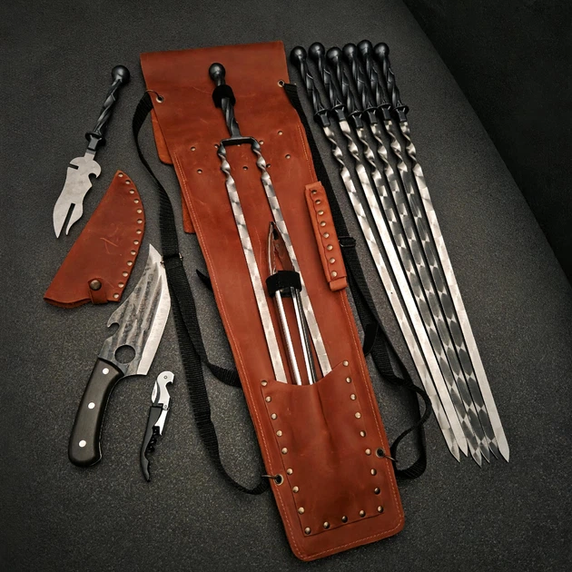 Набір кованих шампурів у шкіряному чохлі "Гепард ГАРТ"
