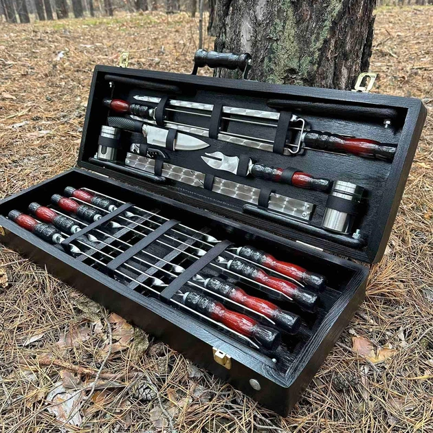 Набір шампурів Грім і Полум’я в дерев'яному кейсі Подарунковий набір для пікніка (KS-7622)
