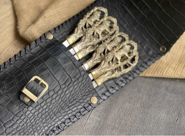 Набір шампурів №7 з нержавіючої сталі з дерев'яними ручками в кейсі зі шкірою (80-89-НШК-7)