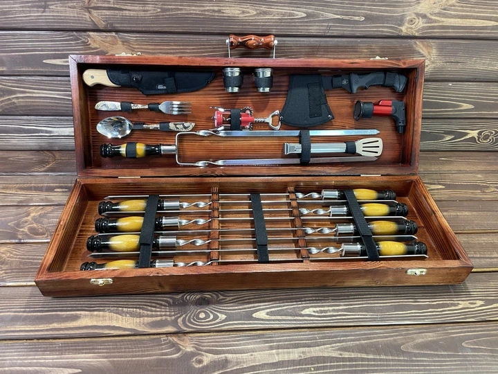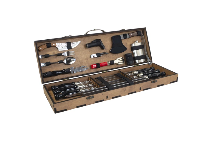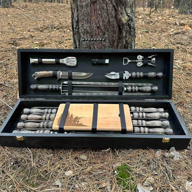 Подарунковий набір для пікніка в дерев'яному кейсі №35 Патріот 16 предметів