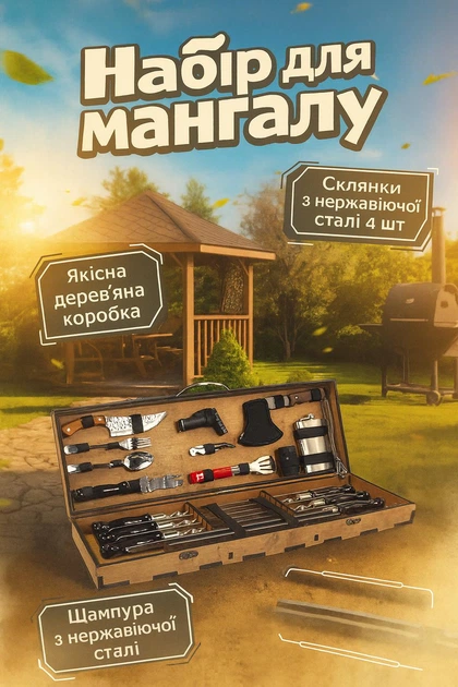 Подарунковий набір Маяк Кейс Стіл Трансформер Для Гриля Пікніка Мангала N201 16 предметів