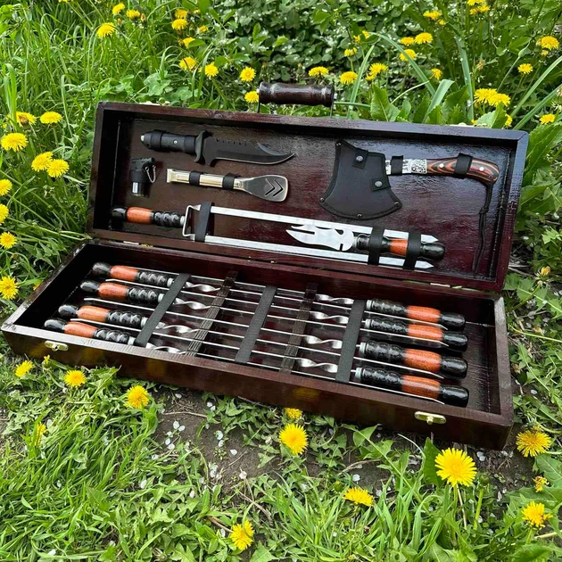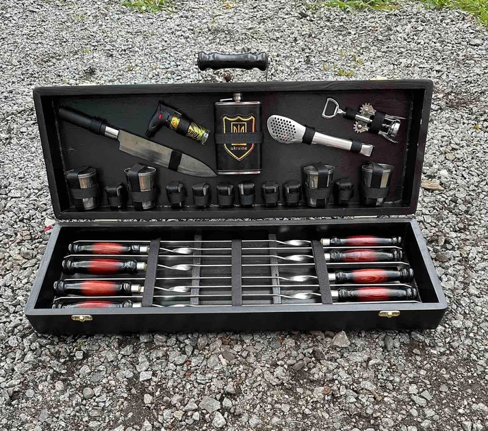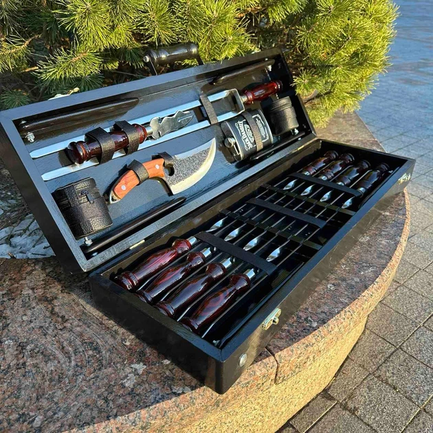 Набір шампурів у кейсі Grill Red UA. Шашличний набір. Подарунок чоловікові