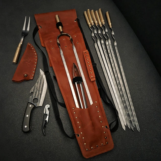 Набір шампурів у шкіряному чохлі "Гепард Гільза"