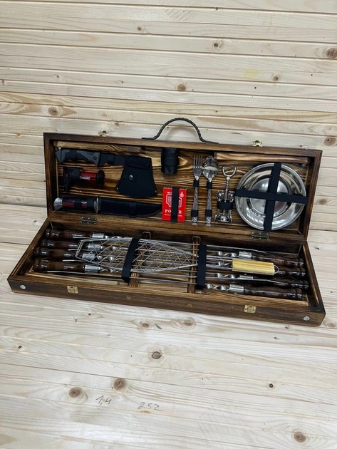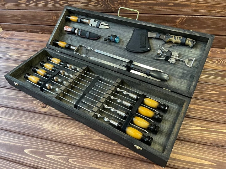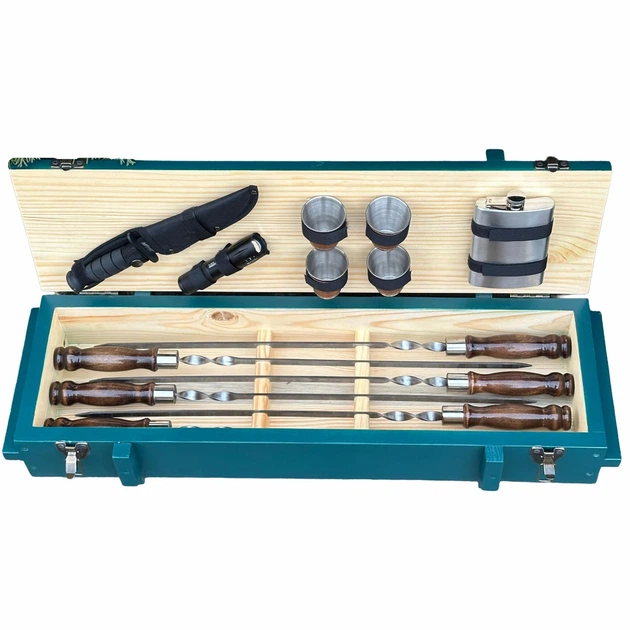 Набір подарункових шампурів для пікніка Гриль Люкс №2, ручної роботи. Подарунок керівнику на свято