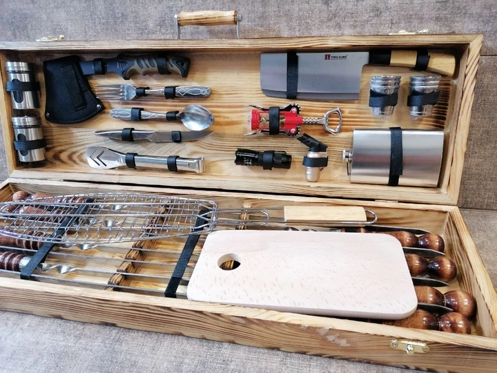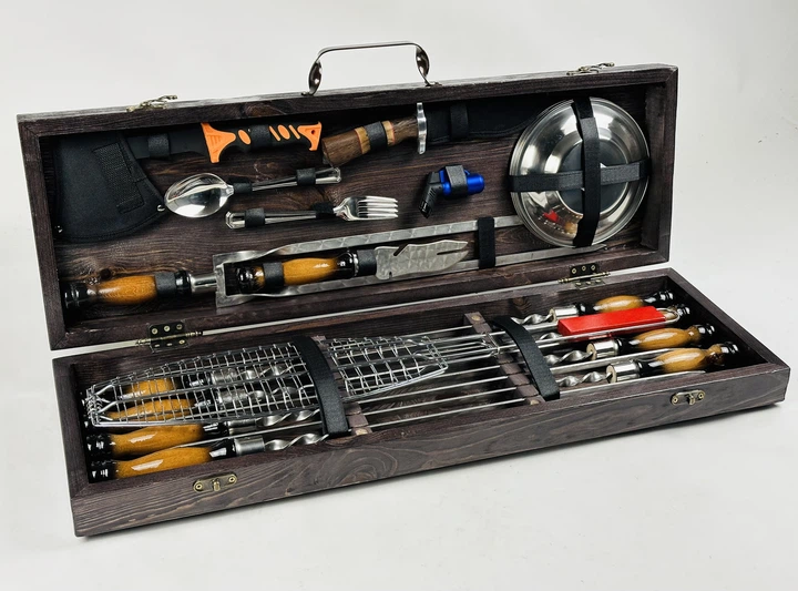Набір шампурів у дерев'яному кейсі Грізлі 21 предмет ручна робота (80-10-KS-7808)