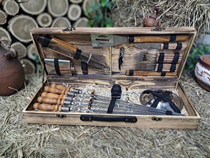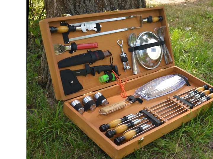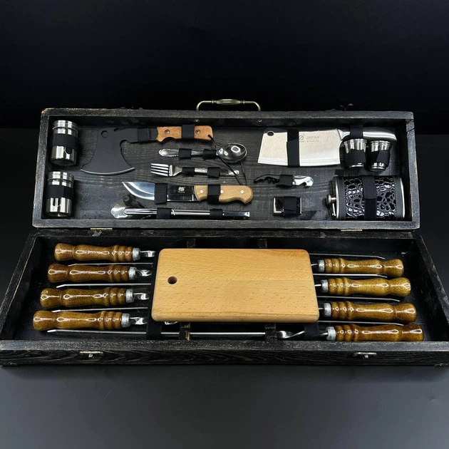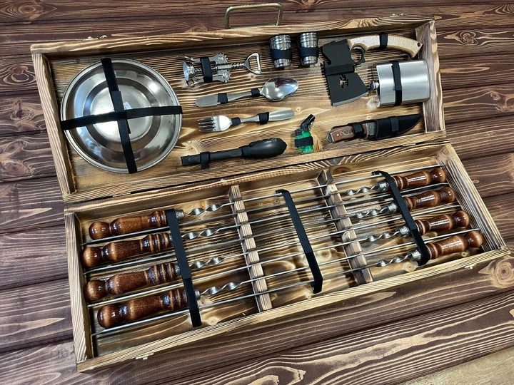 Набір із 6 шампурів + комплект аксесуарів у дерев'яному кейсі l-210