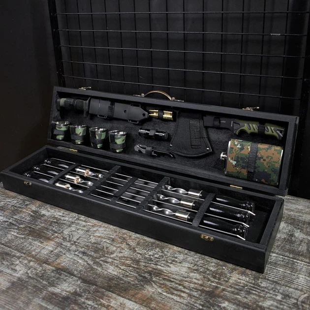 Набір шампурів у кейсі Militari Lux. Шашличний набір. Подарунок чоловікові + Гравіювання