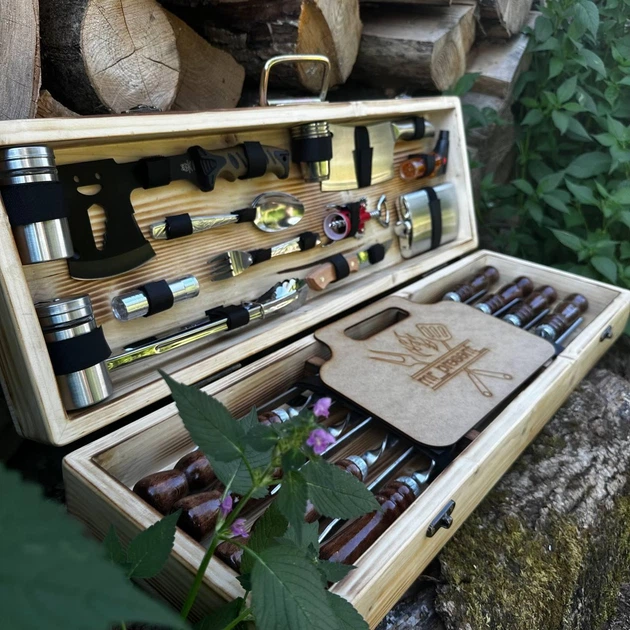 Подарунковий набір Кейс-столик Piknik №4 Шашличний набір. Подарунок чоловікові