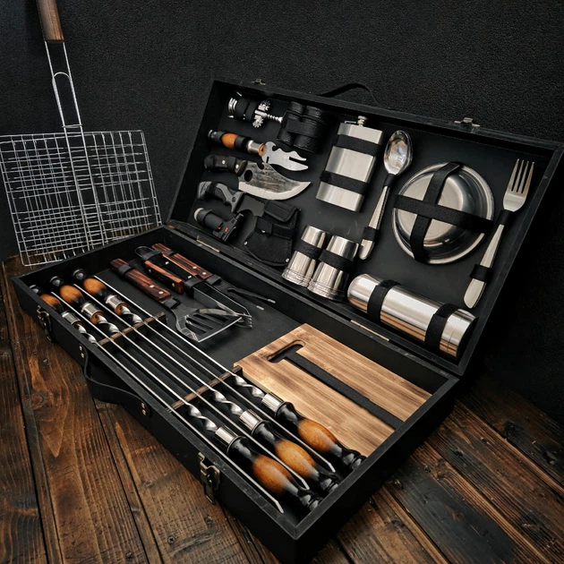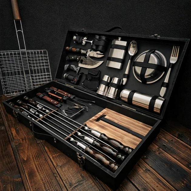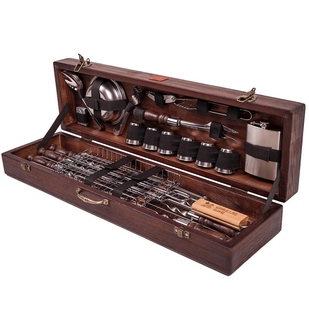 Набір шампурів для пікніка в дерев'яному кейсі "Грізлі Браун" + безкоштовна доставка та гравіювання