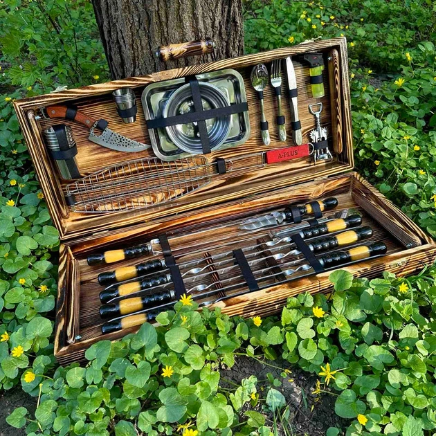 Подарунковий набір для пікніка в дерев'яному кейсі №49 50 предметів