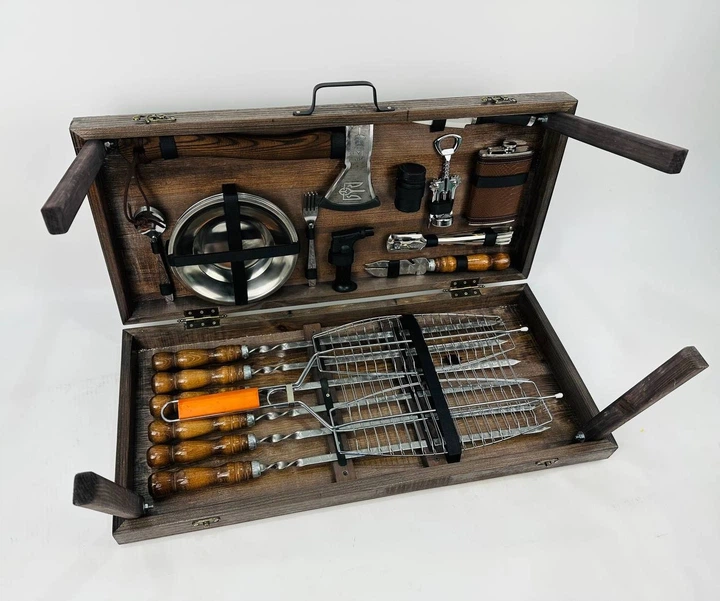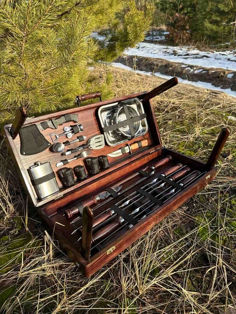 Подарунковий набір для пікніка GRILL MASTER LUX, ручної роботи (кейс-стіл)