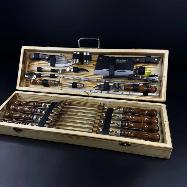 Набір шампурів та аксесуарів Титан із нержавіючої сталі 37 в 1 в дерев'яному кейсі (21-10-KS-7505)