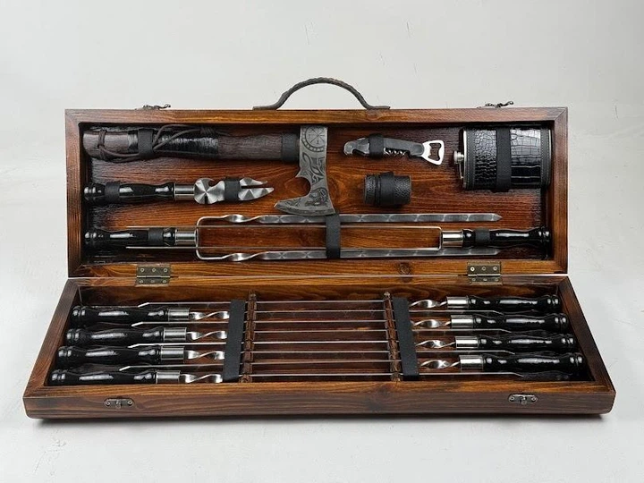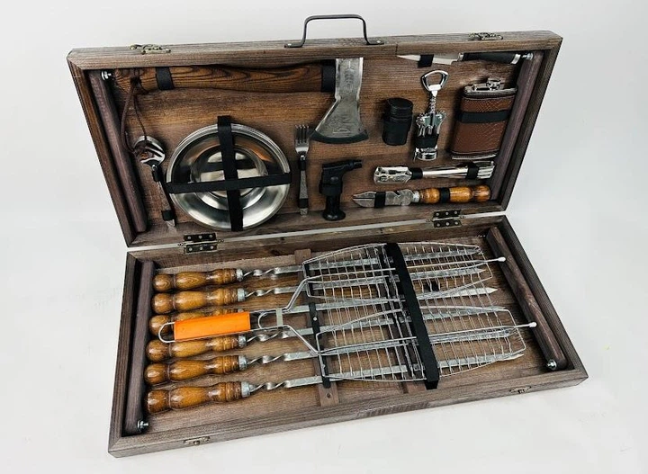 Набір шампурів Imperium Grill в дерев'яному кейсі Подарунковий набір для пікніка (KS-7505)