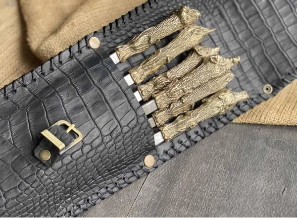 Набір шампурів ручної роботи у шкіряному чохлі, великий подарунковий набір шампурів 6 предметів NKH-10
