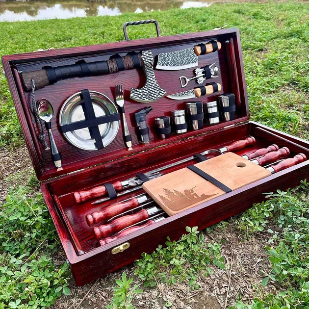 Подарунковий набір для пікніка в дерев'яному кейсі-трансформері №101 Граф 28 предметів