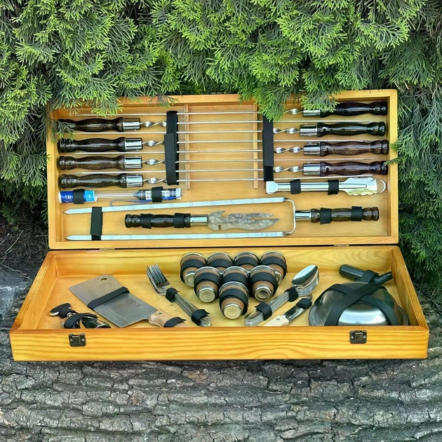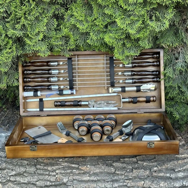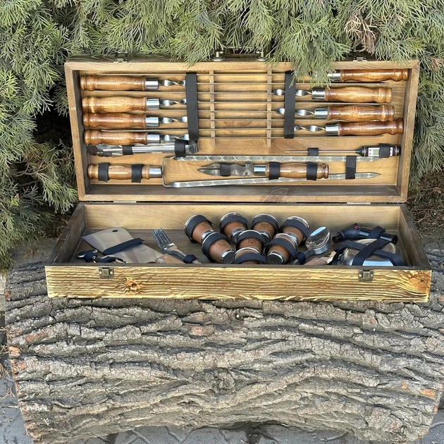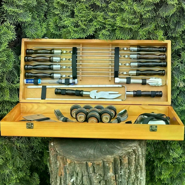 Набір шампурів Саванна BBQ в дерев'яному кейсі Подарунковий набір для пікніка (KS-7908)