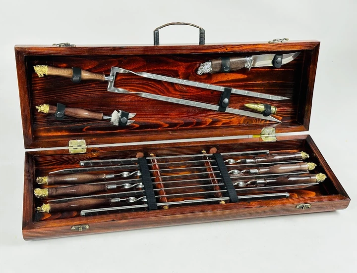 Подарунковий Набір шампурів Магнат ручної роботи Світлий кейс