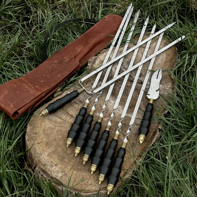 Набір шампурів у кейсі Шампура для шашлику та барбекю Ідеальний подарунок чоловікові САФАРІ (латунні голови)