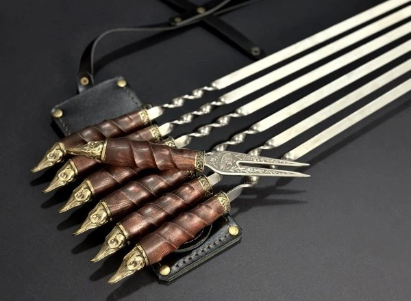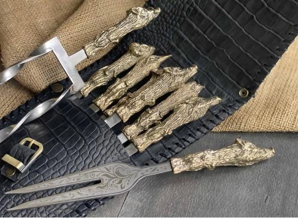 Преміальний набір шампурів ручної роботи у авторському шкіряному чохлі