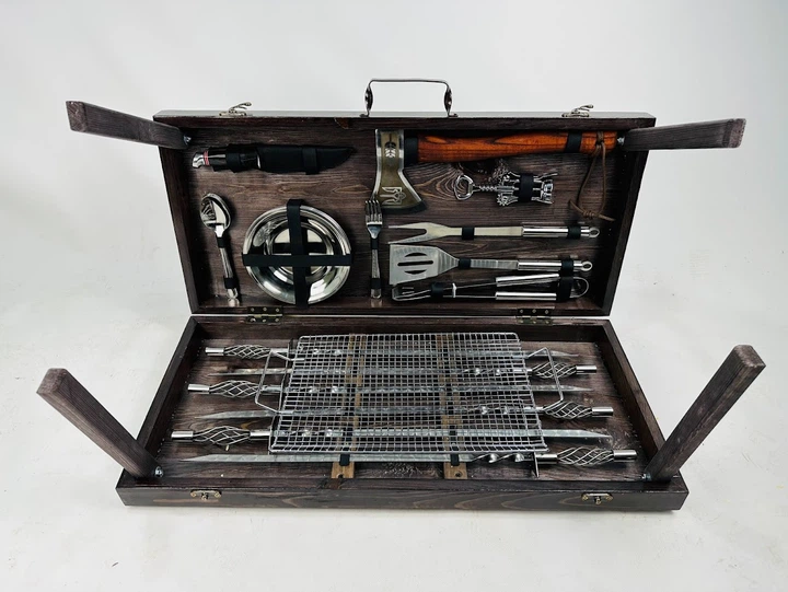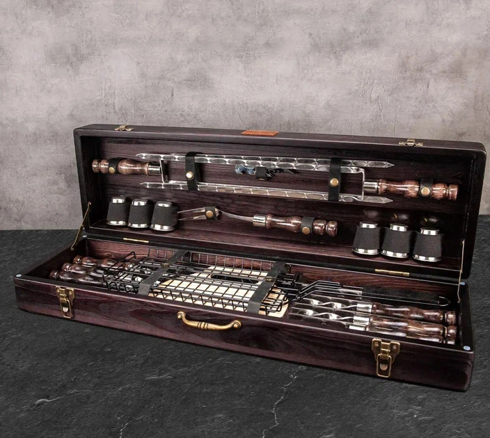 Набір шампурів Legendary BBQ в дерев'яному кейсі Подарунковий набір для пікніка (KS-7512)