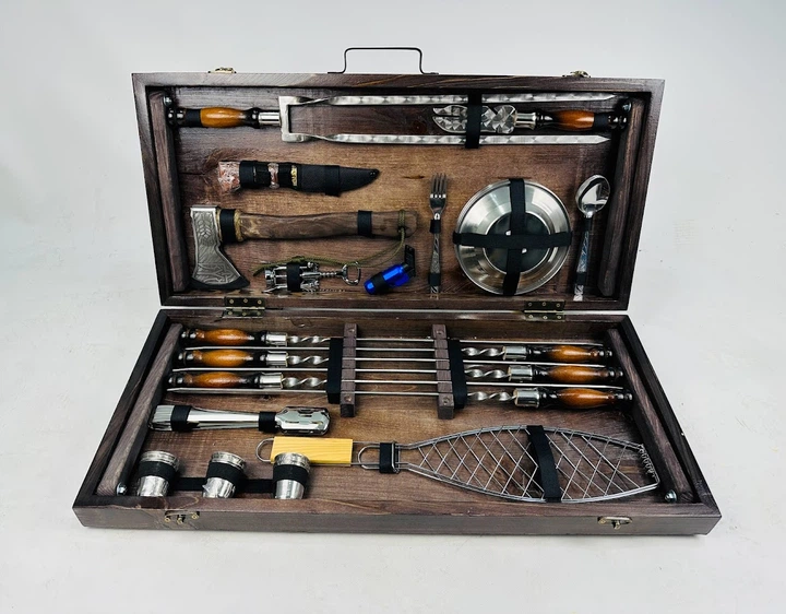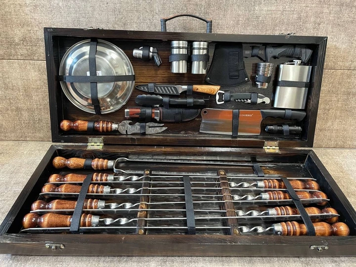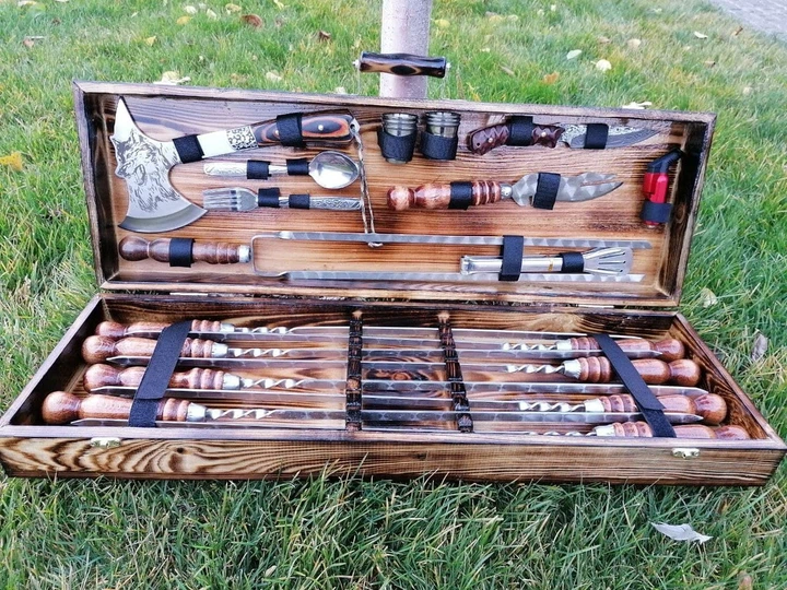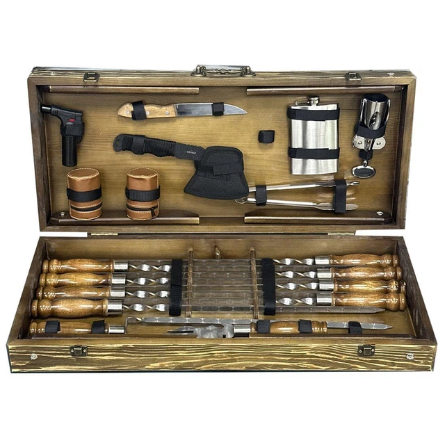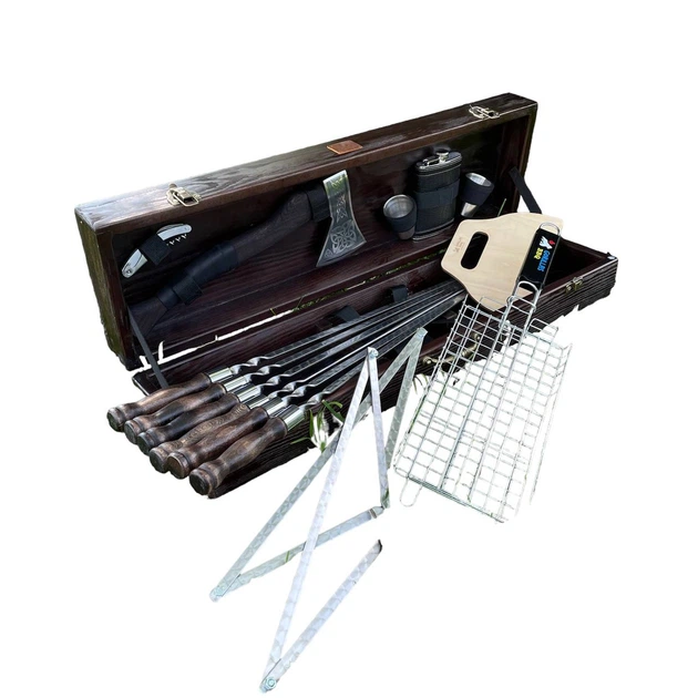 Набір шампурів Gold Grill Set в дерев'яному кейсі Подарунковий набір для пікніка (KS-7511)