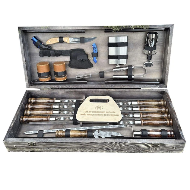 Подарунковий набір шампурів для шашликів та барбекю Вовкодав R Подарунок чоловікові на свято