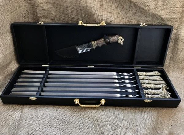 Набір шампурів лиття звірі ручної роботи "Мисливський набір" R у подарунковому кейсі