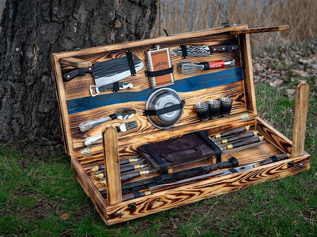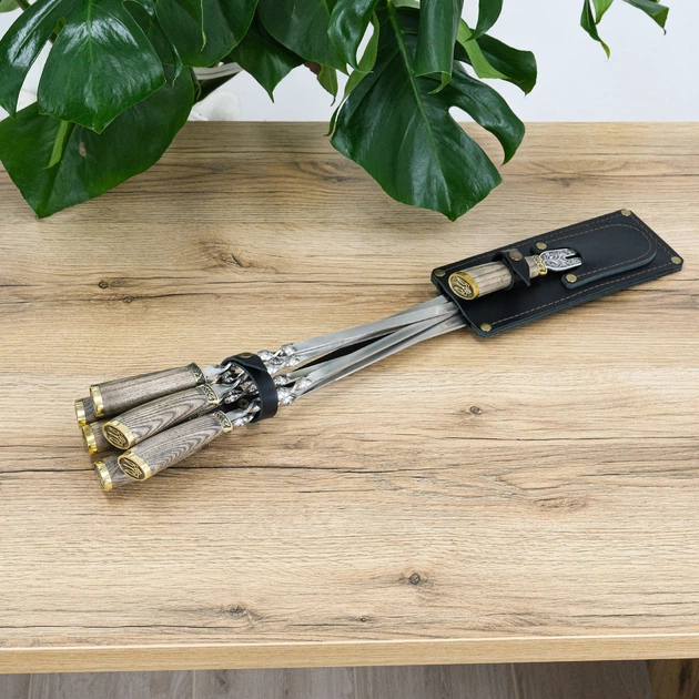 Набір шампурів для шашлику «Мисливський» у дерев'яному кейсі-столику