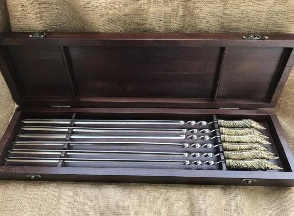 Набір розкладних шампурів з кулеметних гільз 12.7 мм в дерев'яному кейсі s-006