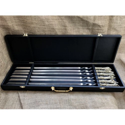 Набір шампурів VIP 6 штук «Лісові Звірі» з ясеновими ручками у буковому кейсі для кемпінгу Гранд Презент (GPNSH0145)
