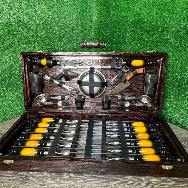 Подарунковий набір для пікніка в дерев'яному кейсі-трансформері №98 Мажор 78 предметів