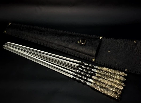 Набір шампурів у шкіряному чохлі Мисливець Premium. Подарунок батькові