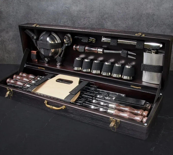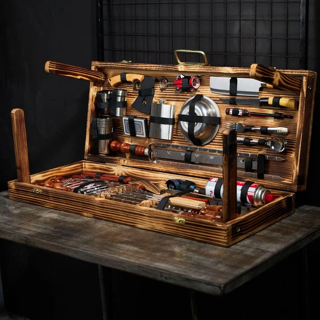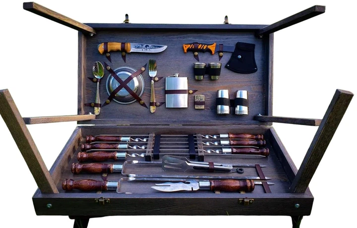 Максимальний набір шампурів у кейсі столику на 12 персон. Ідеальний варіант подарунку для пікніка