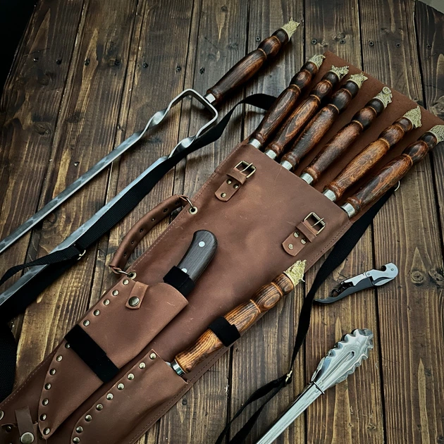 Набір шампурів і аксесуарів Майстер Гриль з нержавіючої сталі на 28 предметів Темне дерево (14-17-1191610000869)