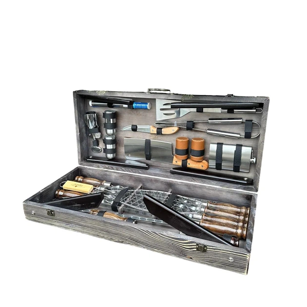Набір шампурів та аксесуарів в дерев'яному кейсі Майстер Гриль з нержавіючої сталі на 29 предметів Чорний (14-17-11916100000