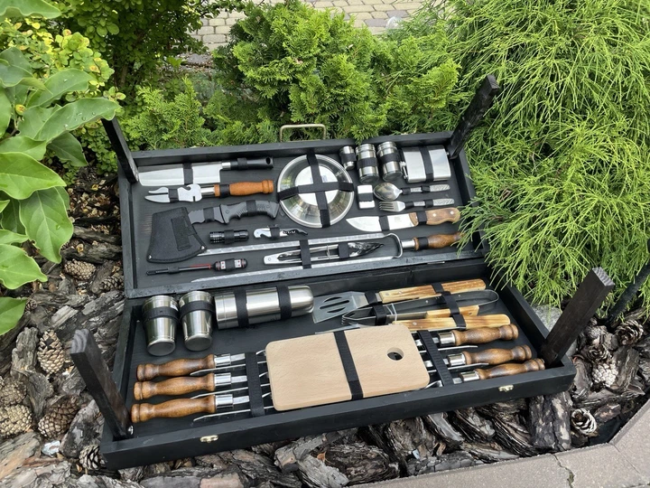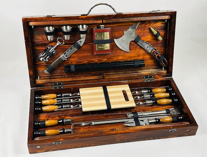 Набір шампурів кейс столик Шашличник 3. Шашличний набір. Подарунок батькові