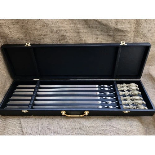 Набір шампурів туристичний у чохлі, 6 шампурів ручної роботи з дерев'яними ручками