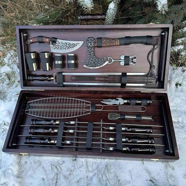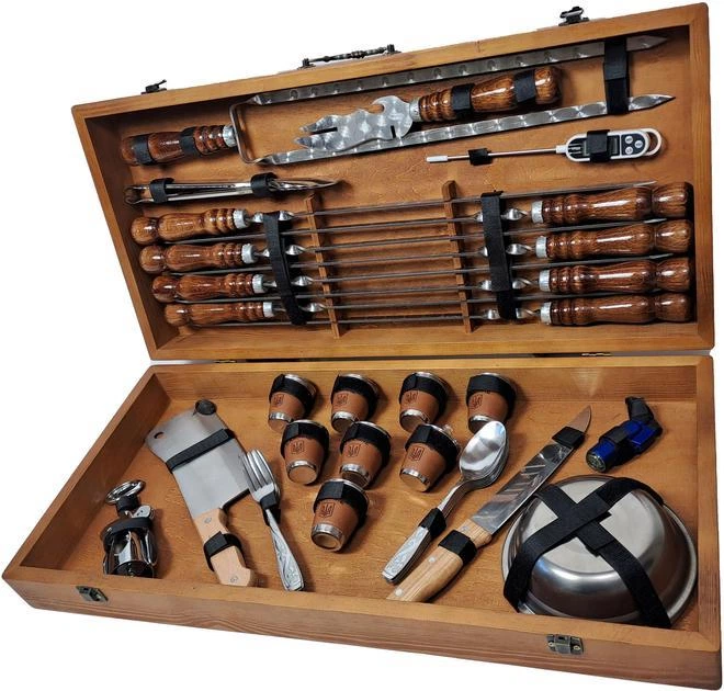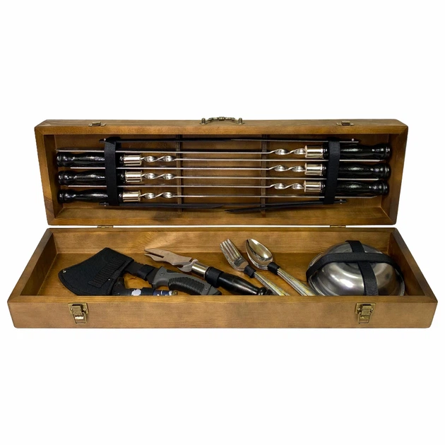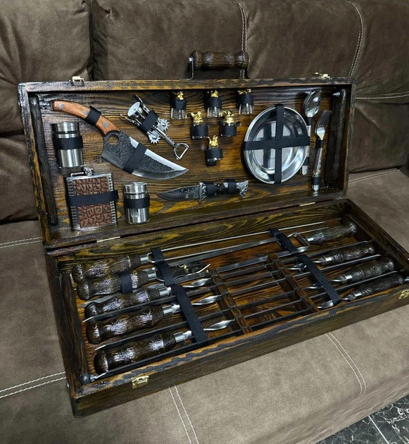 Подарунковий набір для пікніка в дерев'яному кейсі №74 Кремінь 15 предметів