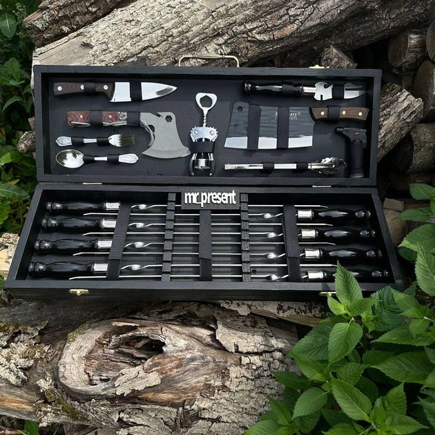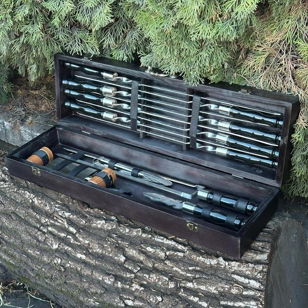 Набор шампуров для барбекю и гриля Хищник Элит Блэк L-1 R. Подарок мужчине на праздник день рождение