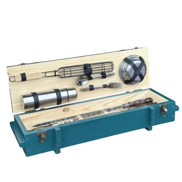 Набір шампурів Комбат із нержавіючої сталі на 27 предметів Бірюза