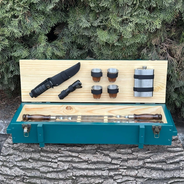 Подарунковий набір шампурів Metalzavod Мілітарі Бірюзовий