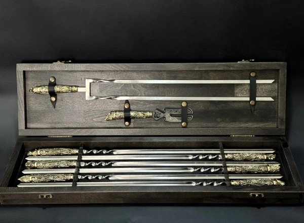 Подарунковий набір шампурів Metalzavod Комбат Світле дерево