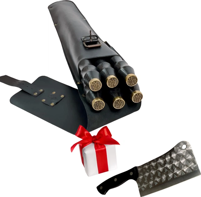 Набір шампурів Gorillas BBQ Польський герб круглий у шкіряному чохлі + сокирка в подарунок (SH-164+т)