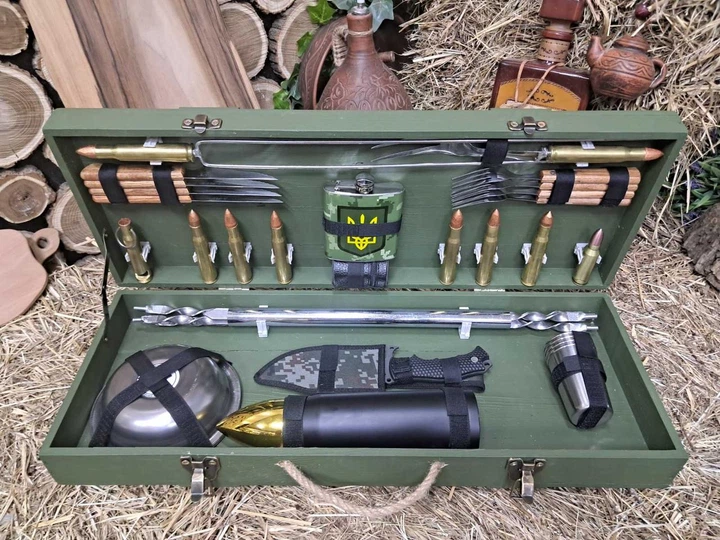 Набір розкладних шампурів з кулеметних гільз 12.7 мм в дерев'яному кейсі s-003