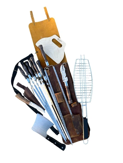 Набір шампурів ручної роботи в шкіряному чохлі ІНДІАНЕЦЬ МАЙЯ з сокирою