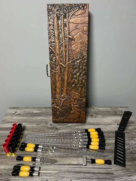 Набір шампурів у кейсі з дерева для шашлику Лісний пейзаж 56х89 см