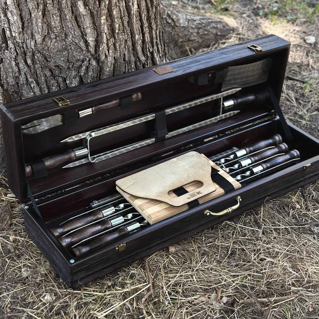 Набір шампурів у кейсі з дерева для шашлику Ліс 56х89 см