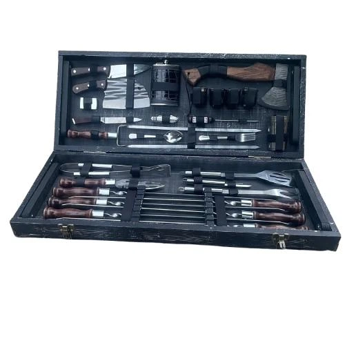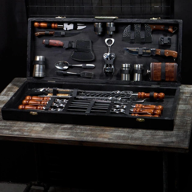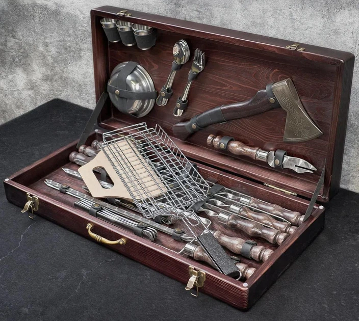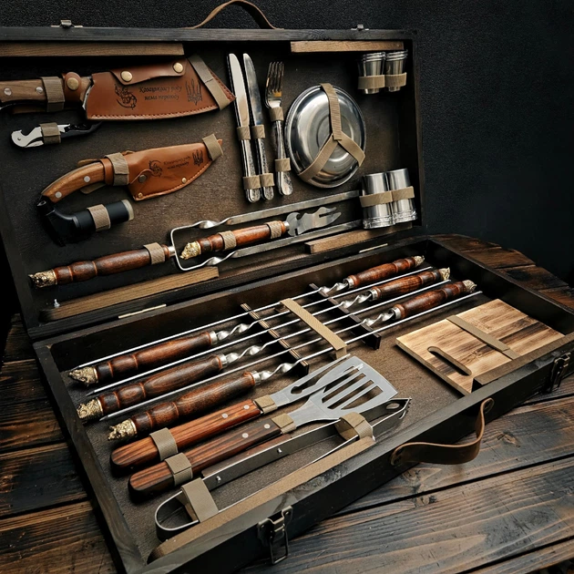 Набір шампурів ручної роботи 6 шт в дерев'яному кейсі, великий подарунковий набір шампурів 43 предмети NP-06